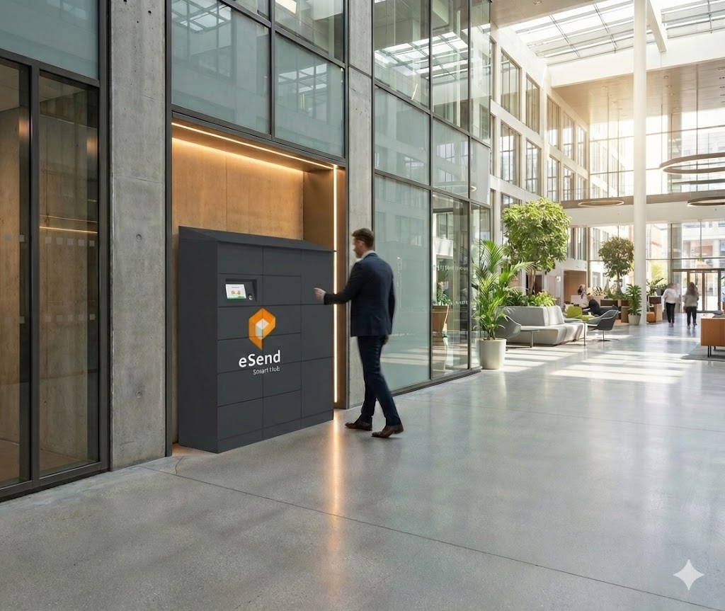 eSend Smart Hub on älykäs modulaarinen palveluautomaatti, joka on suunniteltu helpottamaan tavaravirtojen hallintaa B2B-liiketoiminnassa. Tavaran noutaminen, lähettäminen, säilyttäminen ja vaihtaminen on nyt nopeaa, helppoa ja turvallista.